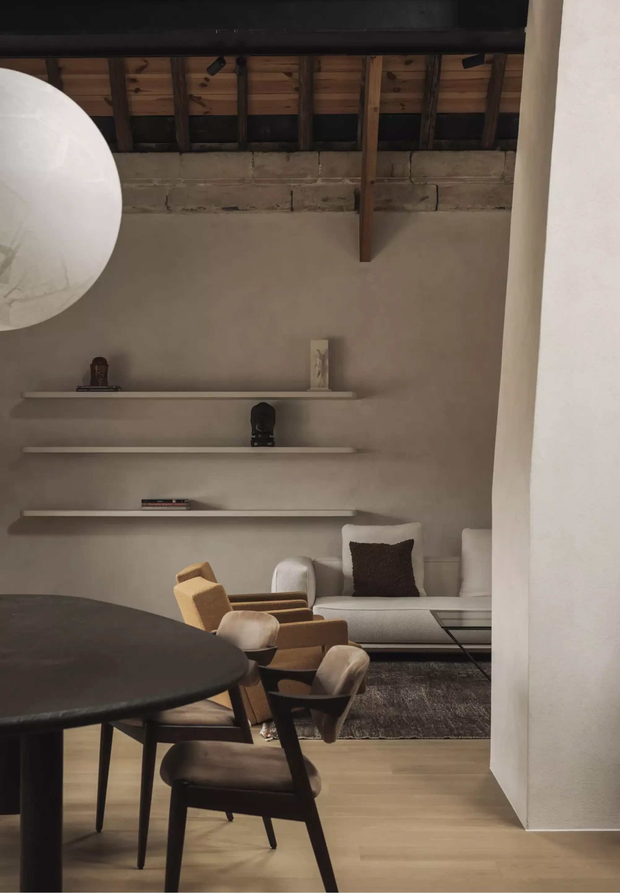 Lighting, including hand-blown glass fixtures, sets a calm, crafted atmosphere and reinforces the home's commitment to material detail.