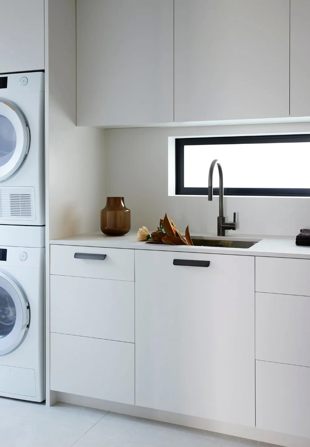 The Bay House is an interior renovation defined by contrast, transformed from a stark 1990s white-box interior into a warm, layered waterfront home. The design centres on the use of natural surfaces to bring cohesion, depth, and a sense of continuity throughout the space. Thoughtful material layering replaces minimal uniformity, creating an interior that feels grounded, inviting, and responsive to its coastal setting.